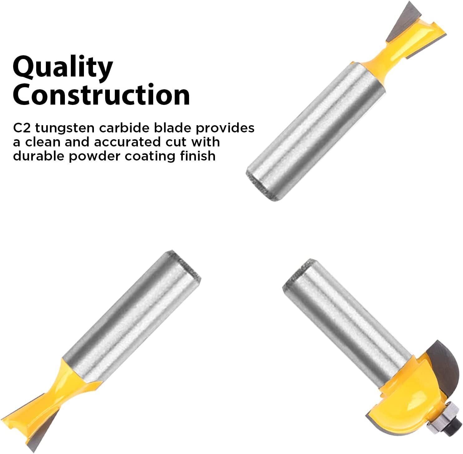 12pc Router Bit Set Tungsten Carbide Tip TCT With 1/2 Shank Cutter and Aluminum Case