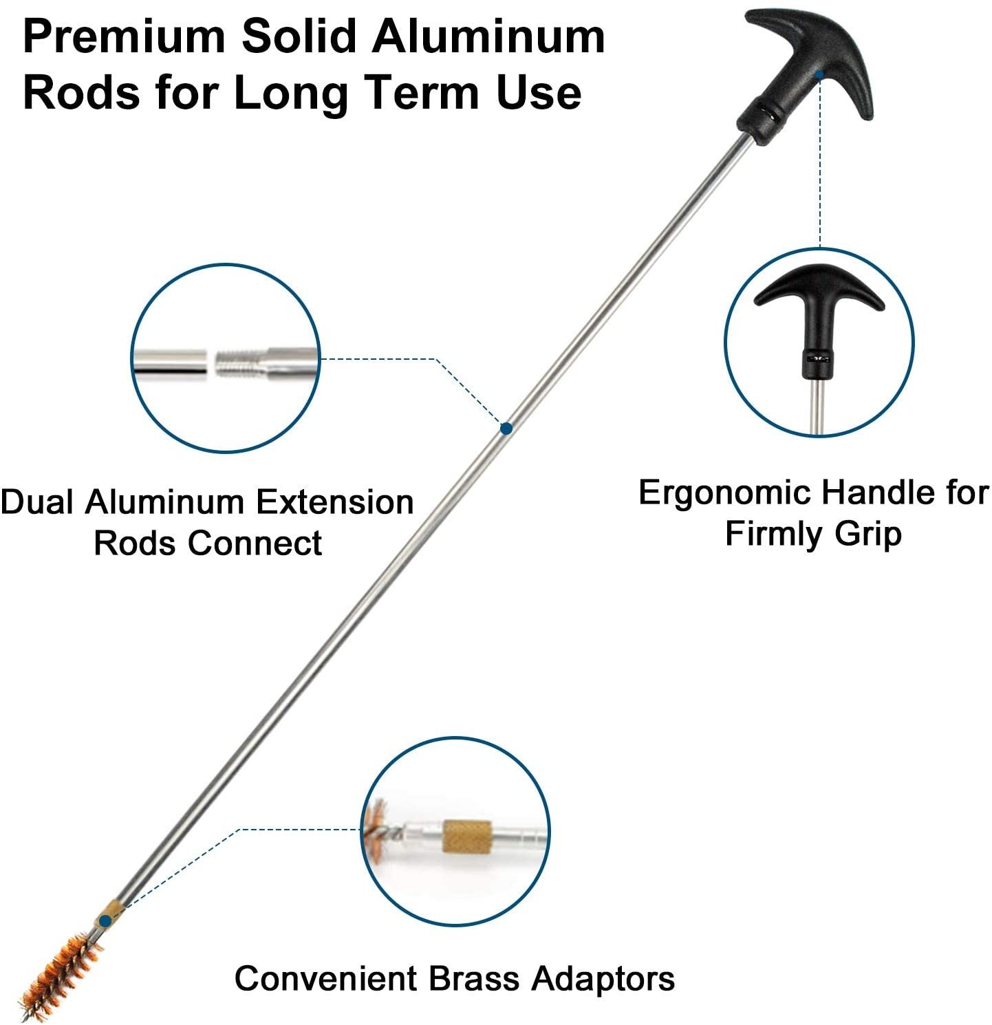 - Features: Rotating handles for both the pistol rods and the shotgun rods. Rotation is important since many barrels have twists / "rifled" and the handle needs to spin