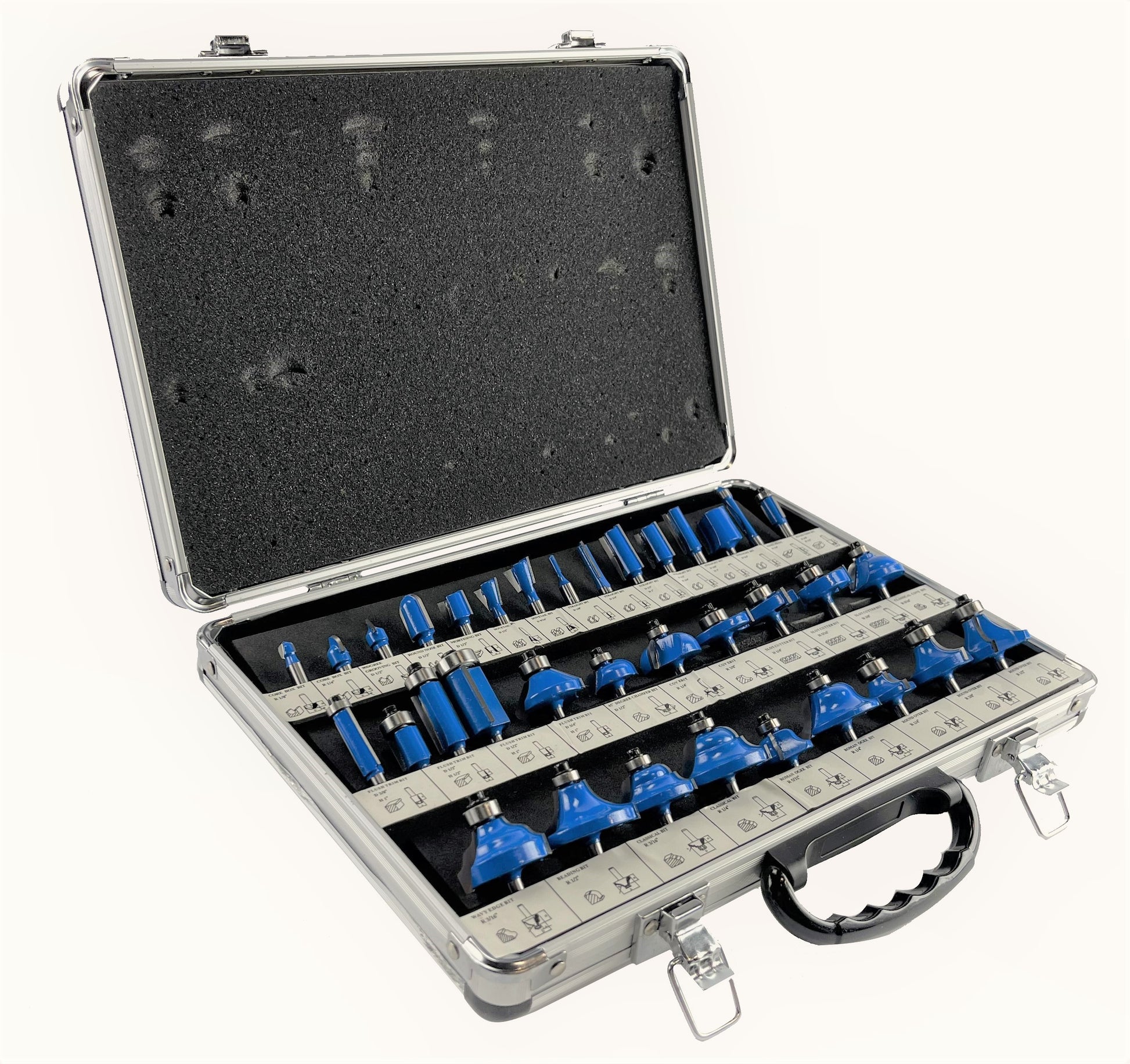 35 Piece EDM ROUTER BIT SET - 1/4" Shank Tungsten Carbide Edges in Aluminum Case